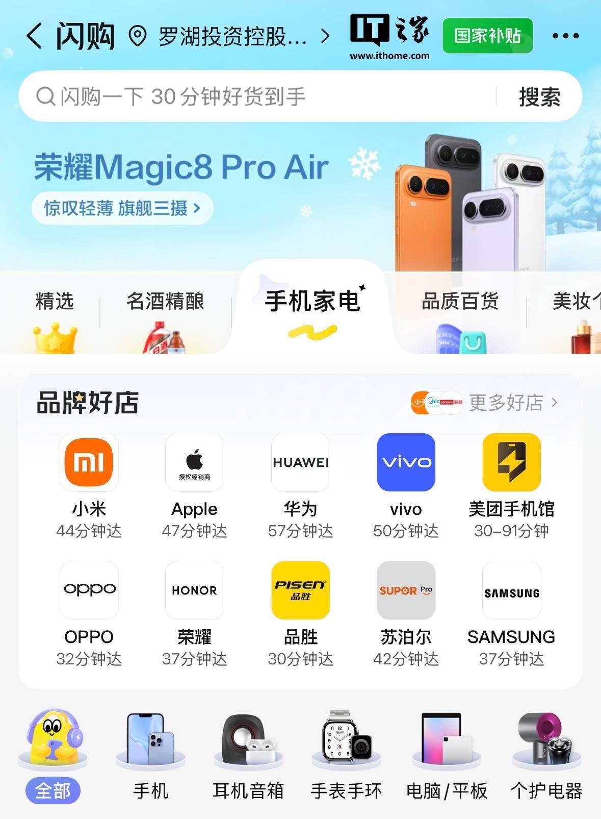 IT之家 1 月 21 日音问亚傅体育app官网入口下载,好意思团闪购文告平台已考究接入国度补贴,市民只需在好意思团 App 搜索“国度补贴”,即可参加关系页面,按情势领取 15% 的补贴优惠,并从隔邻调解门店选购手机、平板、智能衣着等数码家具。