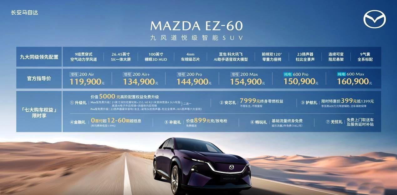在新能源车时间马自达在新车EZ-60上头找都了通盘短板,保握着“东说念主马一体”的操控手感,还以纯电、增程两种能源为用户提供丰富采用。
