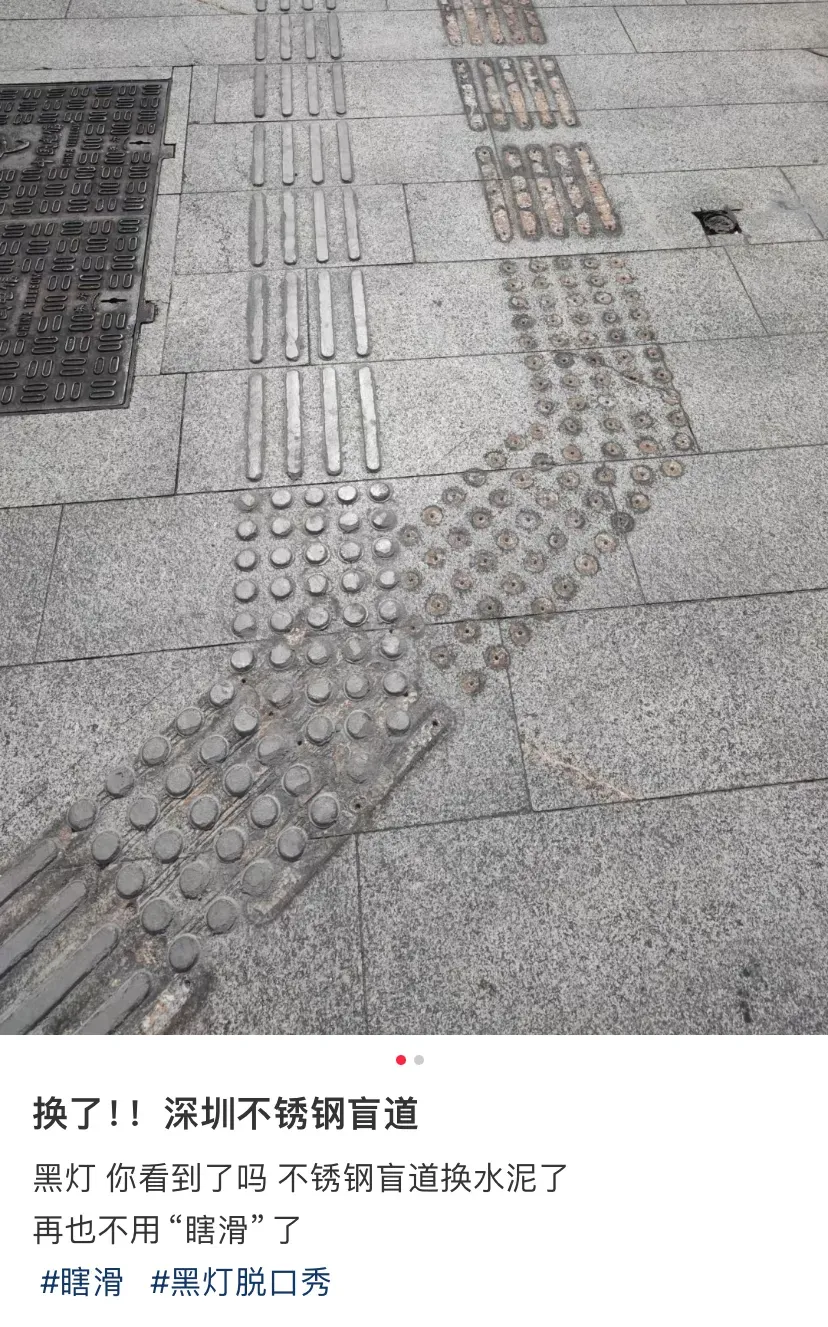 此前,一位视障脱口秀演员在节目里吐槽的“瞎滑”——他在节目中指出不锈钢盲说念名义过于光滑,不仅不成为盲东说念主提供有用的指引,反而可能因摩擦力不及导致颠仆等安全隐患。盲东说念主走在上头靠“瞎滑”,这让不锈钢盲说念的问题进入了公众视野。